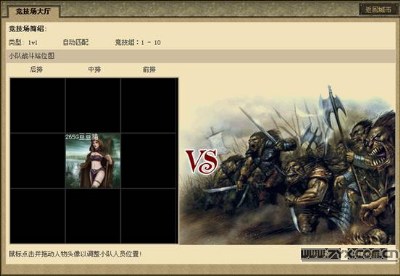 竞技操作:游戏中竞技很简单,只需要从主界面中进入到竞技场中,选择了竞技方式就可以执行了。竞技中比较特色的是玩家可以选择自己的站位图,这也是为团队PK设计的一个团战功能,如何分配位置、如何组队让游戏在PK中也富有很高的策略性。