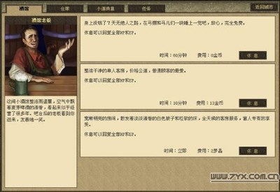 复活/补体:我们在战斗中会遇到濒临死亡、体力不支的时候。这样就需要进行补体操作了,游戏中提供了两种补体的方式,一种是吃药,一种则是在酒馆中休息来恢复体力。酒馆中如果不花费金钱休息,在时间上会相对比较久。游戏中没有即时战斗,吃药补体让人感觉是一种重复的操作了。
