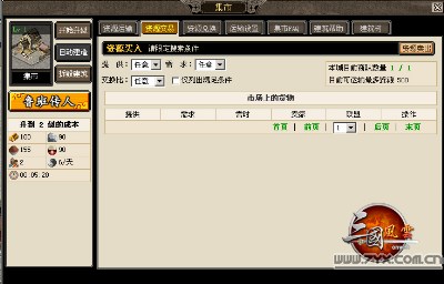 《三国风云》提供了让玩家之间自由交易资源的手段,方便玩家之间交易资源等物品,再现了现实的交易的体系,玩家可以选择的交易方式分为买入、卖出、运输和神秘商人等2.22版本,游戏主界面上“资源兑换”的按钮换成“资源购兑”按钮,可直接点击按钮进行资源购买或“平仓”兑换,无需在城镇中先建设“集市”即可使用。