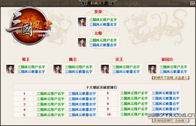 08年出品,至今仍风靡游戏市场,《三国风云》无论是从制作上,还是可玩性上,都是值得赞赏的。作为众多三国题材网游竞相模仿的对象,《三国风云》一直没有停下前进步伐,2.22版本再一次将创新、创意和对玩家需求的深度挖掘推向高潮,作为大厂商昆仑万维呕心沥血的巨作,《三国风云》充分展示了精品网页游戏的内涵和魅力。