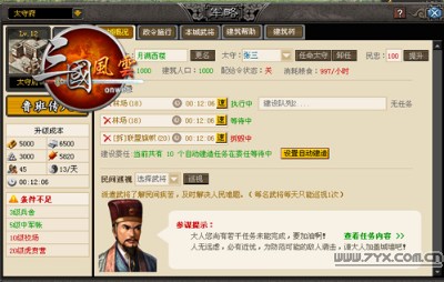 内政发展的好坏直接关系到全局战争的胜败。《三国风云》的内政包括资源建设、建筑建造、科技研发、垦荒开拓等多个项目,研究好这些发展方法,有助于玩家快速的建立和强大自己的实力。