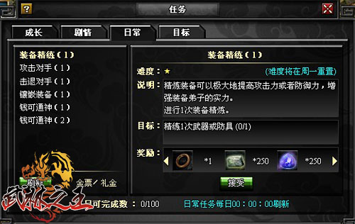 《武林之王》的任务系统与游戏进程有着密切关系,除了帮助玩家更好的上手游戏,了解游戏中的各项功能以外,更是理清游戏脉络的最好途径。