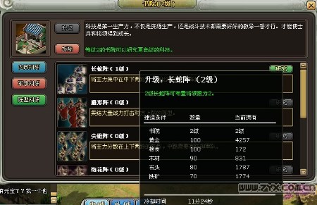 书院建筑里有丰富的科研项目,无论是内政军事科技还是阵形的研发都会助你综合实力更上一层楼;强化系统可以提升武将装备属性;集市可以每日用黄金兑换一定比例的其他资源;还有各个兵种机构等着玩家自己去研究,或许动动头脑你就能玩出自己的一个历史帝国。